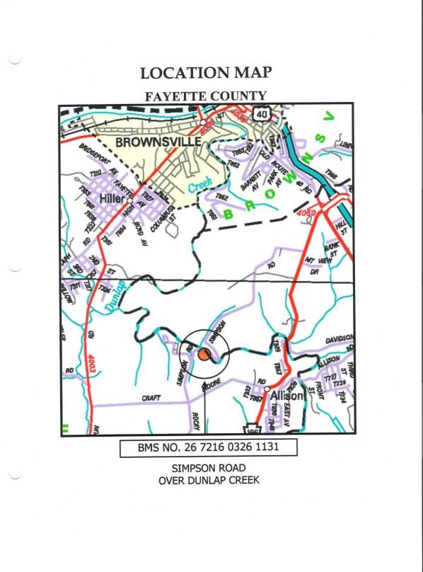 Between Luzerne and Redstone Townships carrying Simpson Road over Dunlap Creek, just west of Allison.