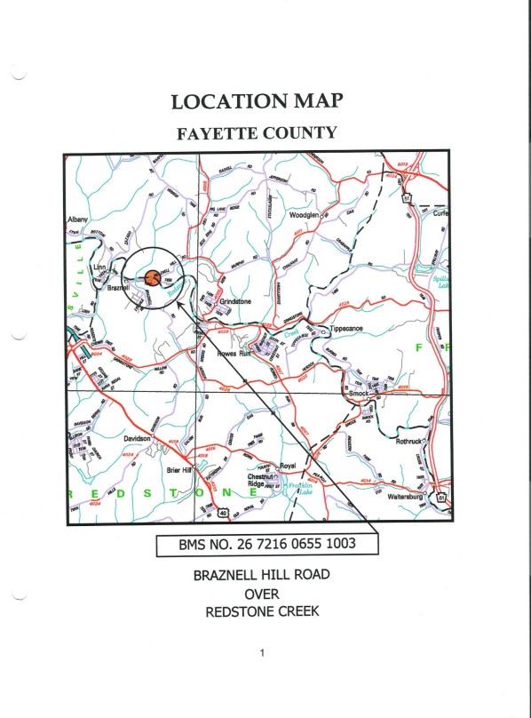 Jefferson and Redstone Townships carrying Braznell Hill Road over Redstone Creek in Braznell, east of Brownsville.