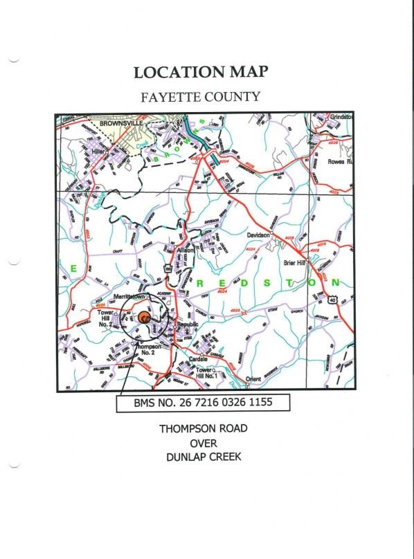 Luzerne and Redstone Townships carrying Thompson Road over Dunlap Creek, just west of Republic off S.R. 4020.