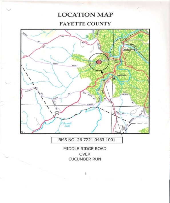 Stewart Township carrying Middle Ridge Road in Ohiopyle State Park over Cucumber Run, just west of S.R. 2019.