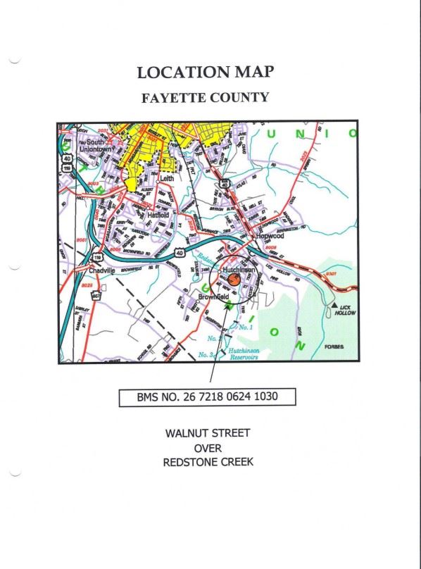 South Union Township carrying Walnut Street over Redstone Creek; just off S.R. 3027 in the Village of Hopwood.